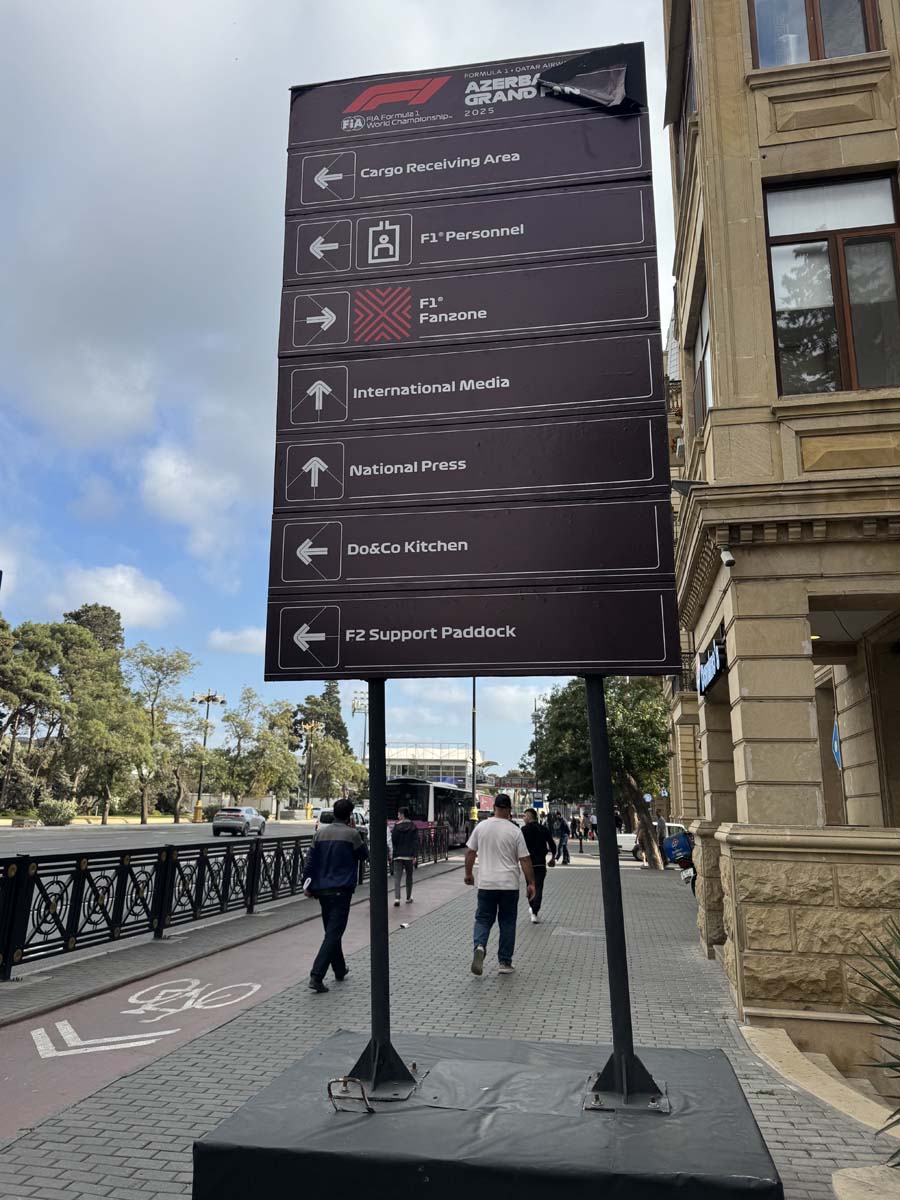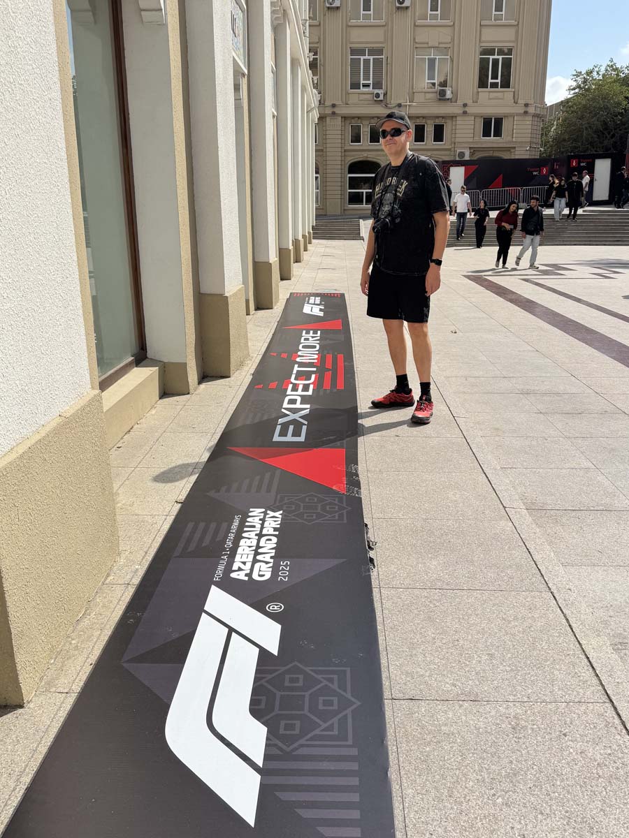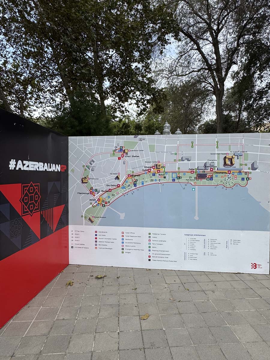 Bakun Formula 1 -osakilpailu, Azerbaijan Grand Prix, ajetaan Bakun katuradalla, jonka pitkät suorat mahdollistavat jopa yli 350 km/h huippunopeudet. Vierailumme ajankohta osui viikon takaisten formulakisojen jälkimaininkeihin, joten näimme vielä paljon F1-aiheista rekvisiittaa ympäri kaupunkia.