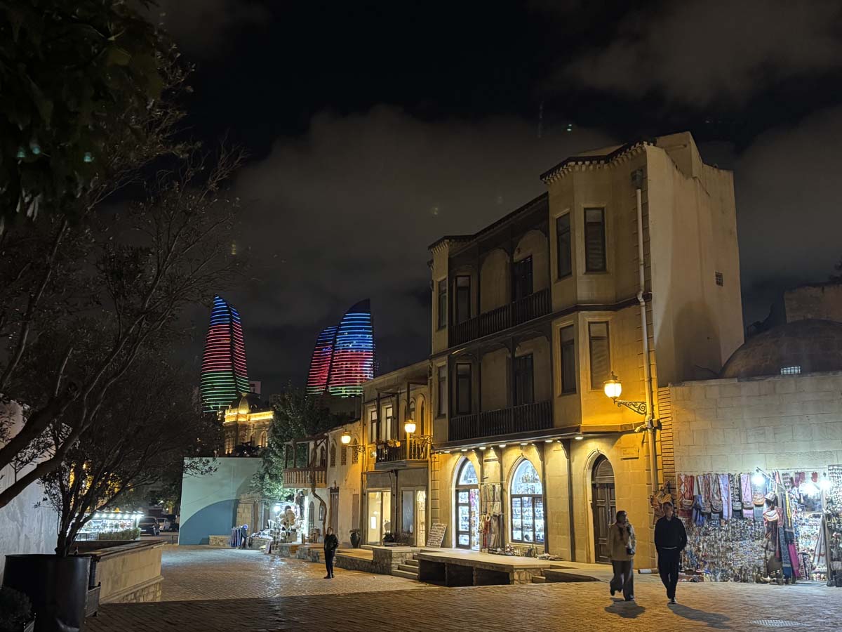 Maan pääkaupunki Baku sijaitsee Kaspianmeren rannalla. Keskustan rinteillä kohoavat futuristiset Flame Towers -pilvenpiirtäjät ja vanhankaupungin kapeat kujat muistuttavat historiasta.