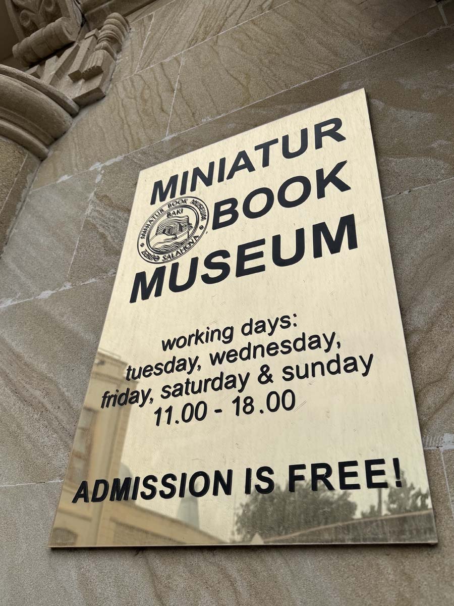 Museon perusti paikallisen taidemaalarin Tahir Salahofin sisar Zarifa Salahova. Hän alkoi kerätä miniatyyrikirjoja vuonna 1982. Hän kartutti kokoelmaansa seuraavien 30 vuoden aikana ja museosta löytyykin yli 6500 minikirjaa peräti 64 eri maasta. Löytyipä sieltä kokonainen hyllyllinen suomalaistakin kirjallisuutta!