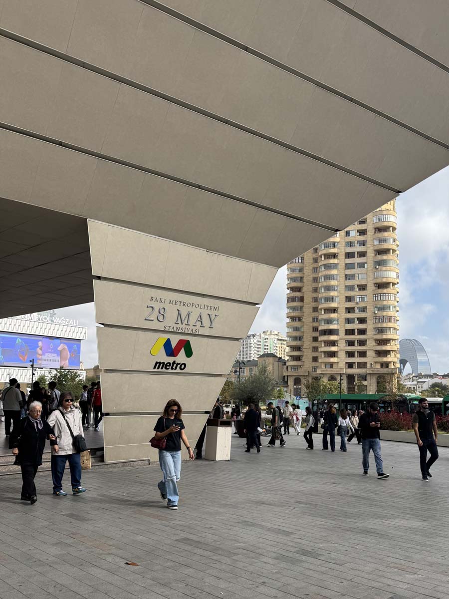 Azerbaidžanin itsenäisyyspäivän mukaan nimetty 28th May -asema toimii liikenteen solmukohtana Bakun keskustassa. Eläväisen aseman ympäristöstä löytyy mm. ostoskeskus ja rautatiemuseo. Me suuntasimme kuitenkin asemalta sivummalle kohti Yasil-basaaria.