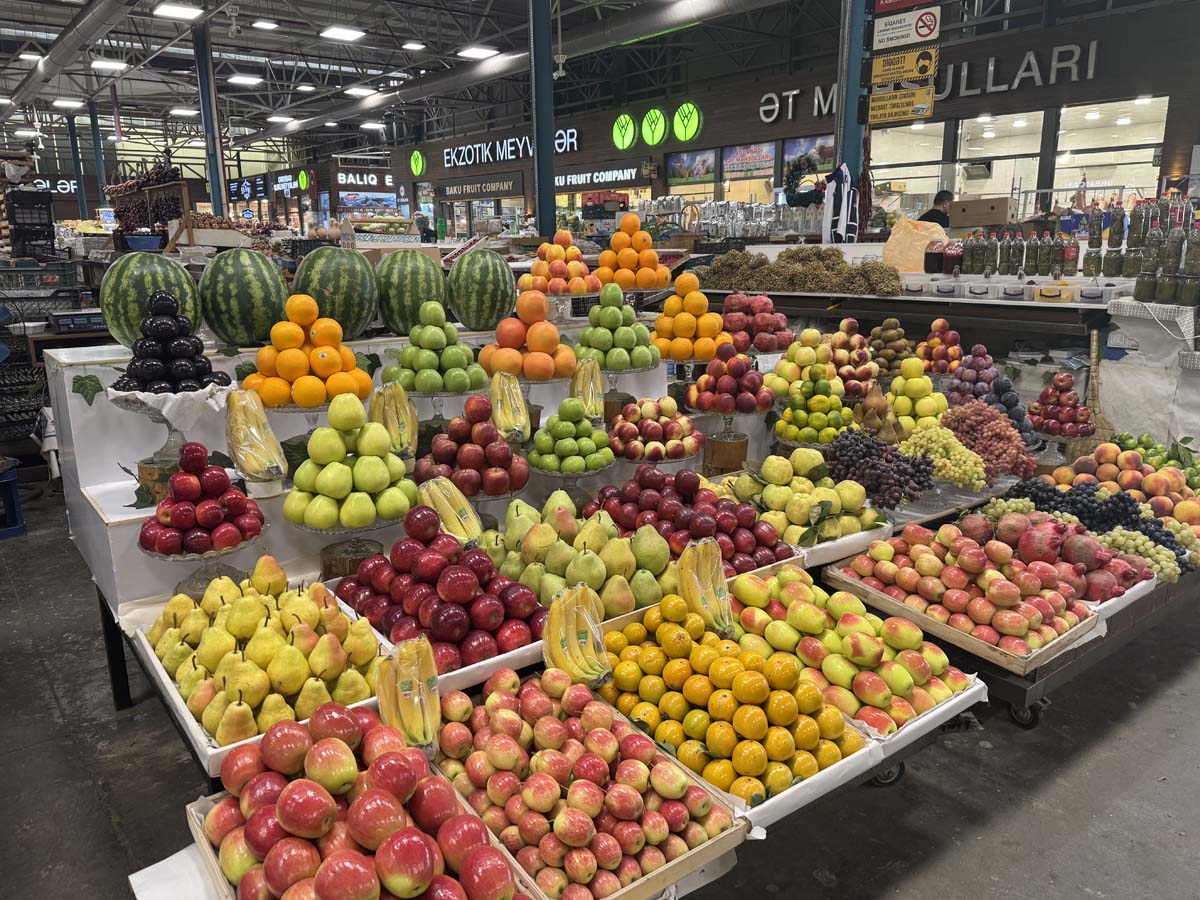 Tällä Bakun suurimmalla ruokatorilla myydään hedelmiä ja vihanneksia, kalaa, lihaa, juustoja, yrttejä, mausteita, pähkinöitä, kuivattuja hedelmiä, mehuja, hilloja sekä paikallisia herkkuja, kuten kaviaaria ja sahramia.