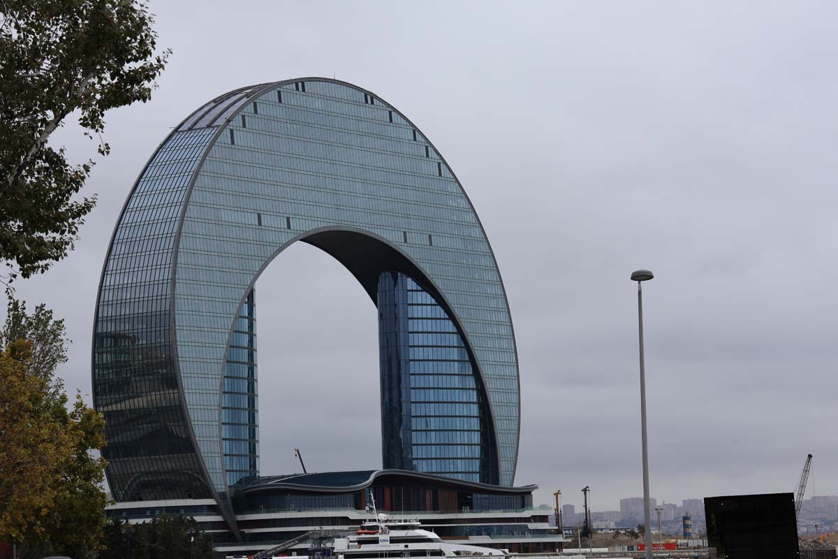 Näyttävä Crescent Hotel on Baku Bayn rannalla sijaitseva puolikuun muotoinen hotelli, jonka kaari symboloi Azerbaidžanin lipun puolikuuta. Rakennus erottuu selvästi kaupungin rannikolla ja olisi ollut mielenkiintoista päästä sinne sisään.