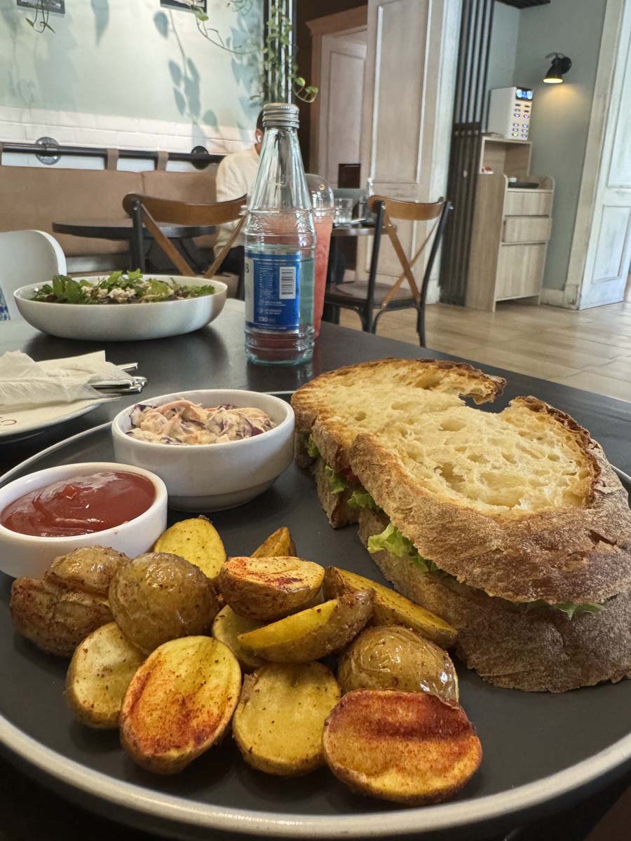 Pääsimme onneksi turvallisesti perille. Teimme Elinalle pikaisen nähtävyyskierroksen, sillä maa oli hänelle uusi, kävimme syömässä hatsapuria erinomaisessa Friendly Corner -ravintolassa ja teimme pikaiset tuliaisostokset, sillä autokyytimme kohti Armeniaa lähtisi jo iltapäivällä kahdelta.