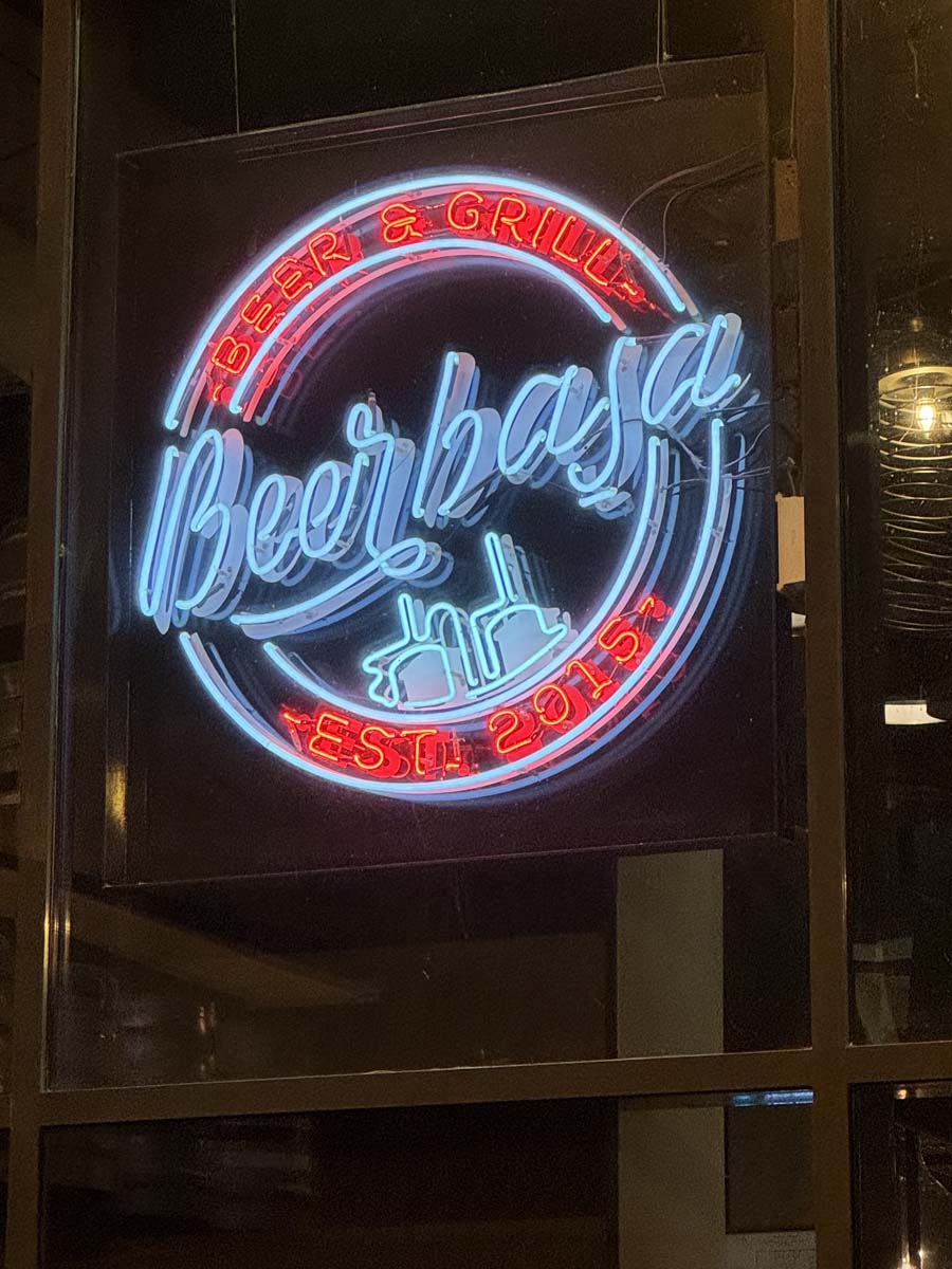 Liekkitorneilta kävelymatkan päästä löytyvä Beer Basha on onnistunut ainakin markkinointimielessä saamaan itsensä lupaavasti näkyville. Paikka vaikuttaa myös olevan suosittu, sillä sisään emme meinanneet ilman pöytävarausta päästä lainkaan. Kyseessä paljastuikin lopulta olevan oikeastaan pikemminkin ravintola kuin panimo.