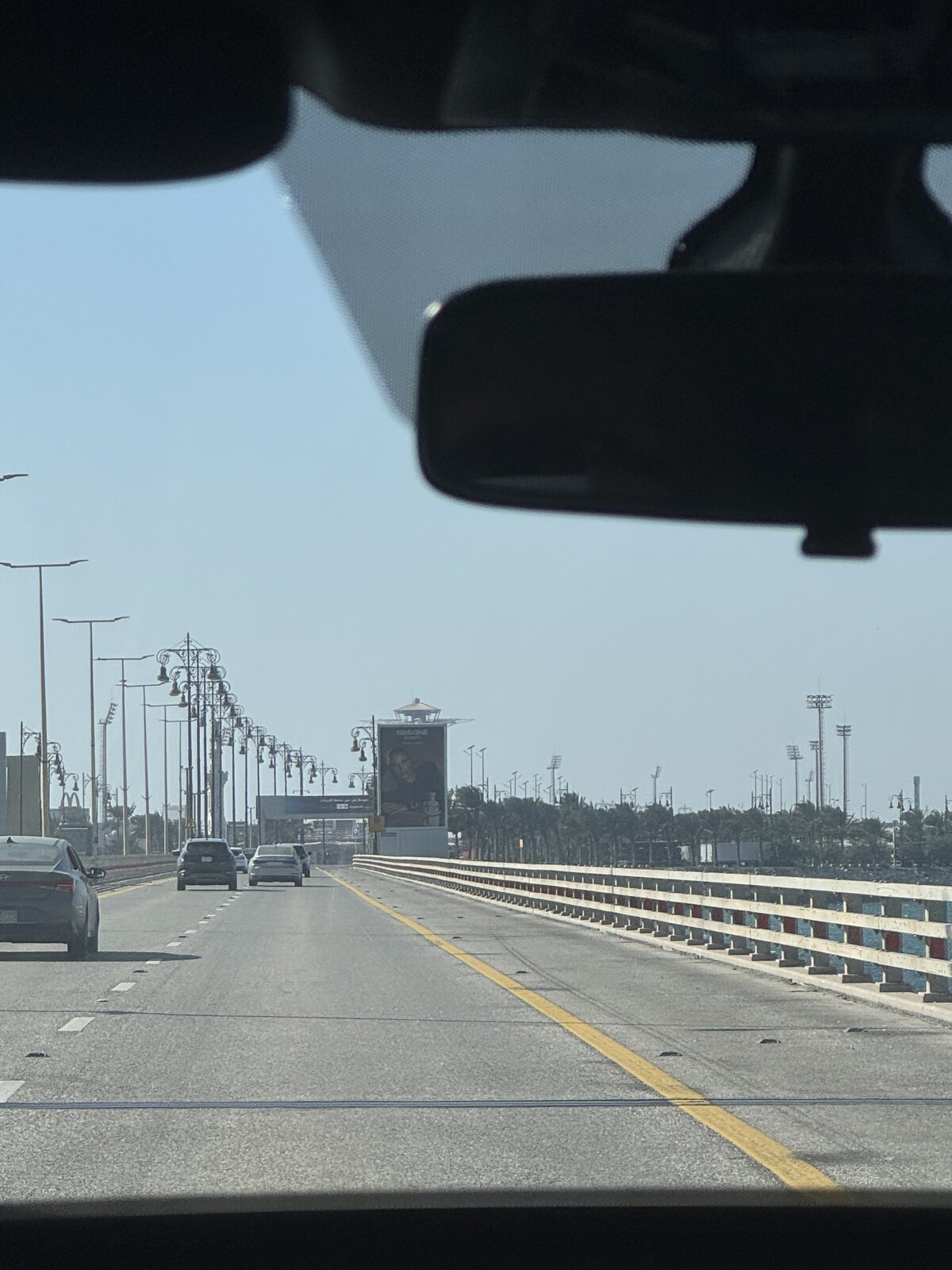 Liikennettä oli alueen ympärillä ruuhkaksi saakka, mutta oppaan kanssa kaikki sujui joutuisasti ja lähdimme keskukselta takaisin kohti Bahrainia ja merta halkovaa moottoritietä.