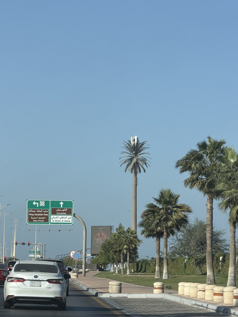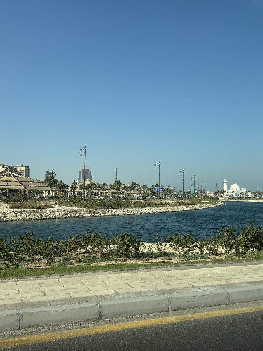 Ajelimme palmujen reunustamaa rantabulevardia pitkin kohti Dammamia ja juttelimme oppaan kanssa päivän ohjelmasta. Matkan varrelle osui myös isompi King Abdul Aziz -satama, mutta sinne ei enää pysähdy risteilijöitä, sillä tällä alueella ei kuulemma ole riittävästi vetovoimaa.