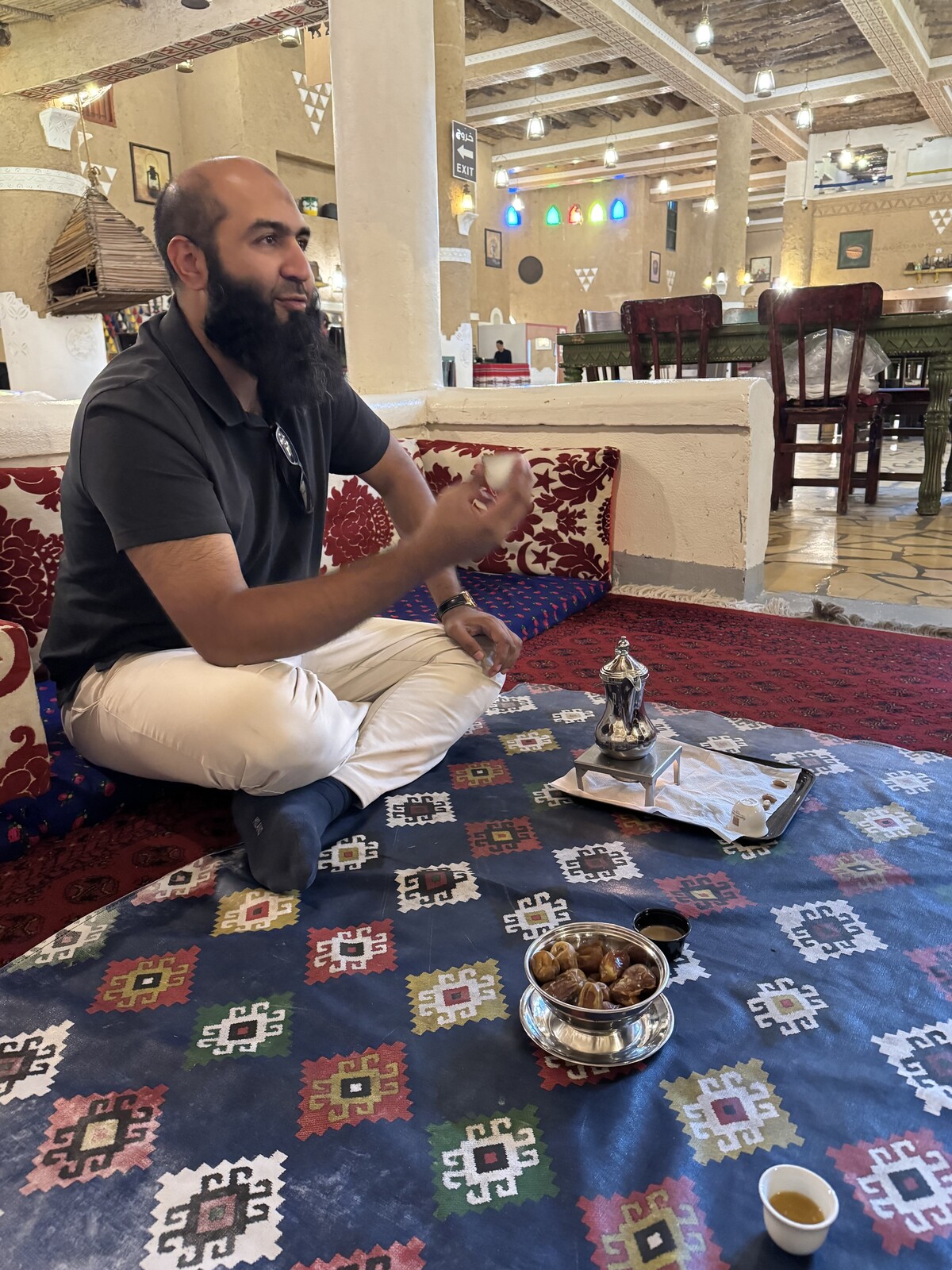 Siirryimme viereiseen loossiin, jonne meille katettiin jälkkäriksi arabialaista kahvia, joka maistui enemmänkin mausteiselta teeltä, sekä taateleita. Erityisesti taatelit olivat superhyviä!