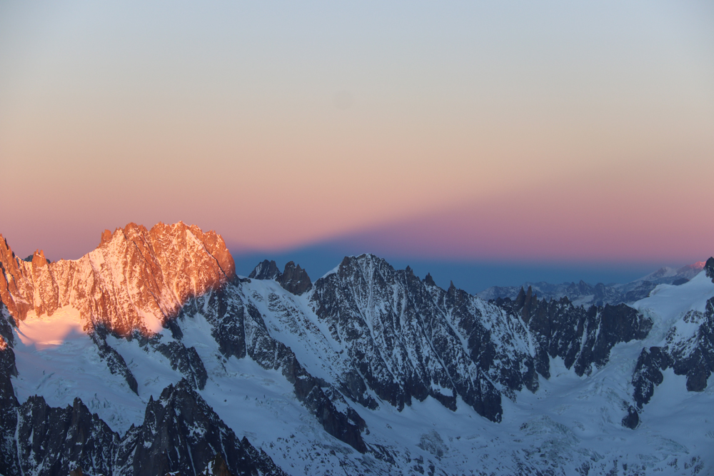 Nyt iski paha valinnanvaikeus. Upeita auringonlaskukuvia oli paljon niin kotikulmilta kuin ulkomailtakin. Tässä Aiguille du Midin huipulta otetussa kuvassa on kuitenkin jotain sellaista valojen ja varjojen leikkiä, jota ei kovin usein saa kameralle tallennettua.