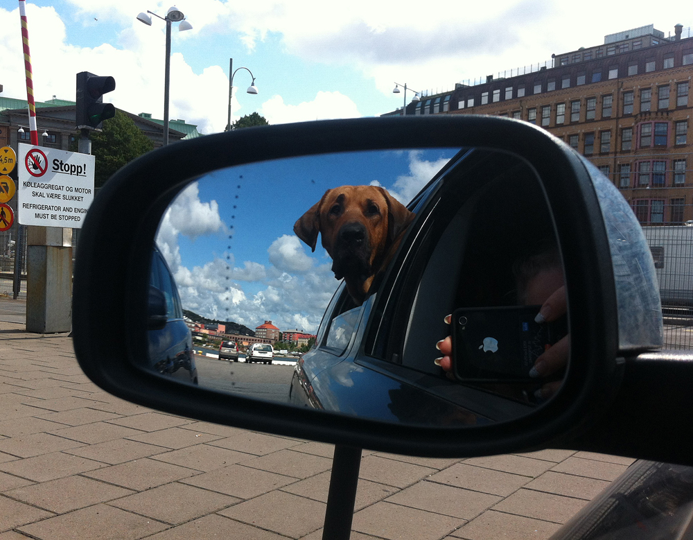 Pluton kuvalla aloitettiin ja siihen on hyvä myös päättää tämä kymmenen kuvan sarja. Tässä ollaan ajettu Tukholmasta Göteborgiin ja odotellaan Fredrikshavniin vievää lauttaa. Pluto matkustaa ulkomailla takapenkillä turvavöissä ja aina tilaisuuden tullen se saa haukata happea sekä ihailla maisemia auton ikkunasta. Satamatyöntekijöitä ja muitakin ohikulkijoita on viihdytetty urakalla Pluton toimesta, kun se työntää reippaasti pään ulos ikkunasta, jotta näkee varmasti kunnolla kaikki ulkomaailman tapahtumat.