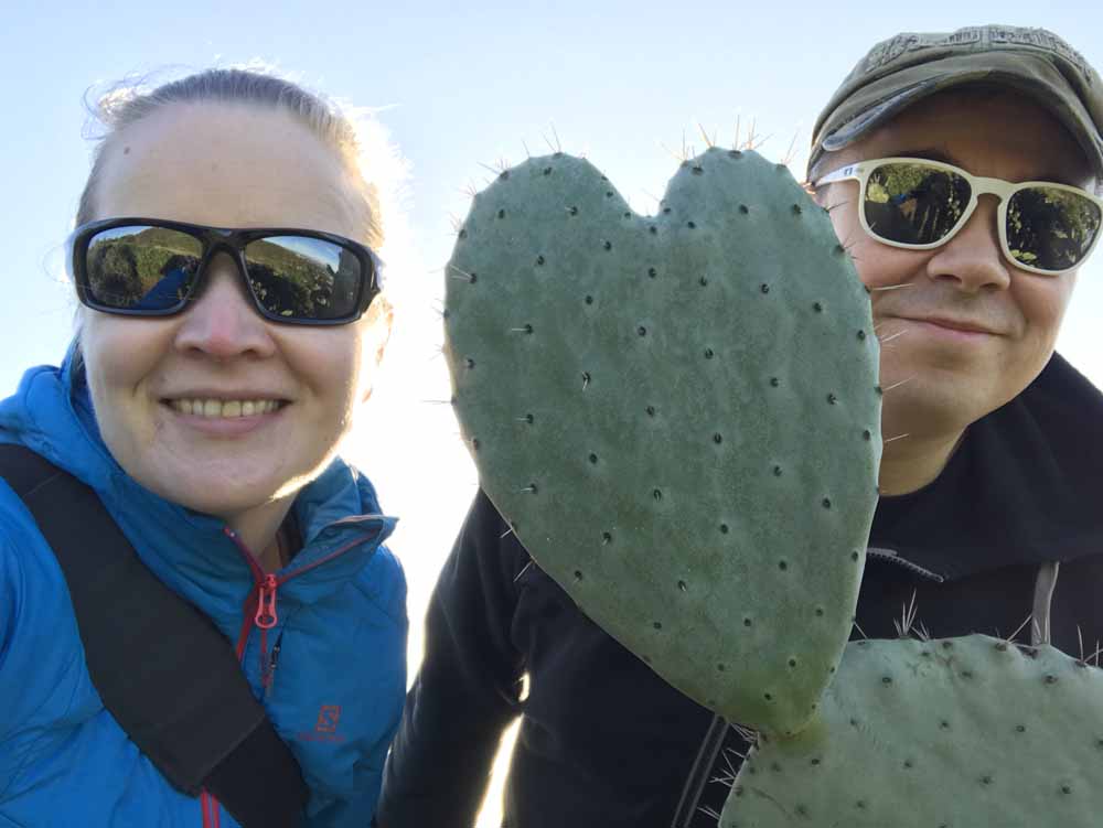Katrin selän takana oli salassa suunniteltu yllätystä Las Vegasiin, jossa oli tarkoitus viettää varsinainen syntymäpäivä. Kaveripariskunta oli salaa hommannut itselleen jenkkilänreissun, jonka päätteeksi hankkiutuivat Vegasiin samaan aikaan meidän kanssamme. Laitoin Katrin ajamaan loppumatkan Death Valleystä Vegasiin ja päivittelin salaa tilaisuuden tullen aina sijaintimme lähestyessämme kohdetta. Hotellihuoneen selvittyä, vedin toisella kädelläni matkalaukkua perässä, toisella ohjasin Katrin huomion peliautomaatteihin ja hisseihin ja toisella naputtelin salaa pikaviestillä huoneen numeroa kavereille. Hetkinen, montakos kättä olikaan.?! No, siltä se juuri tuntui.