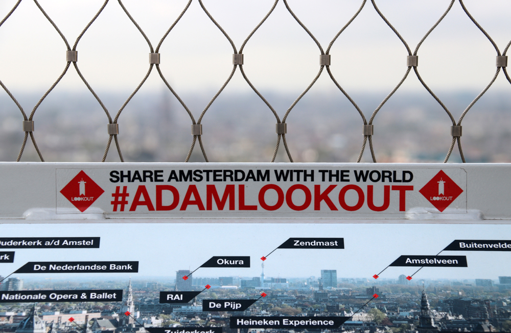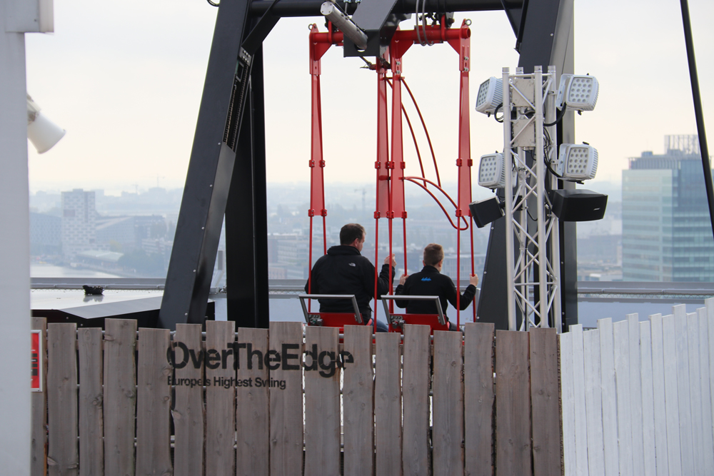 A’DAM Lookout mainittiin monilla nettisaiteilla, joten siihen piti tutustua tarkemmin. Noin 100 metriä korkean talon katolta löytyi 360-näköalatasanne, ravintola sekä keinu, joka keikkuu yläilmoissa reunan yli ja takaisin.