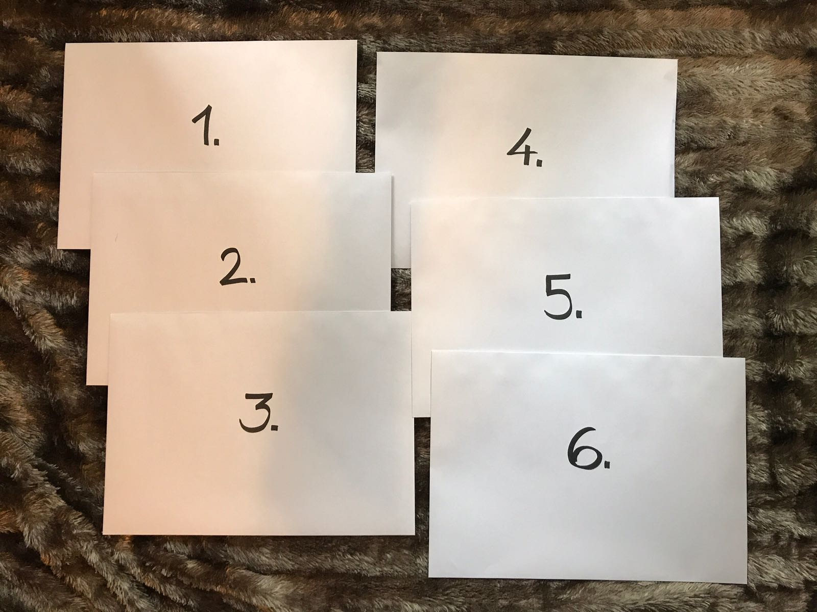 Yllätysillallisella ystäväni sai kuusi kirjekuorta, joista ensimmäisestä löytyi matkarahaa. Toisesta kuoresta löytyi lentolippu Amsterdamiin, kolmannesta kuoresta osoite ja kartta hotellille. Neljännestä kuoresta matkaopas, viidennestä kuoresta matkaseuraa ja kuudennesta kuoresta onnittelukortti.