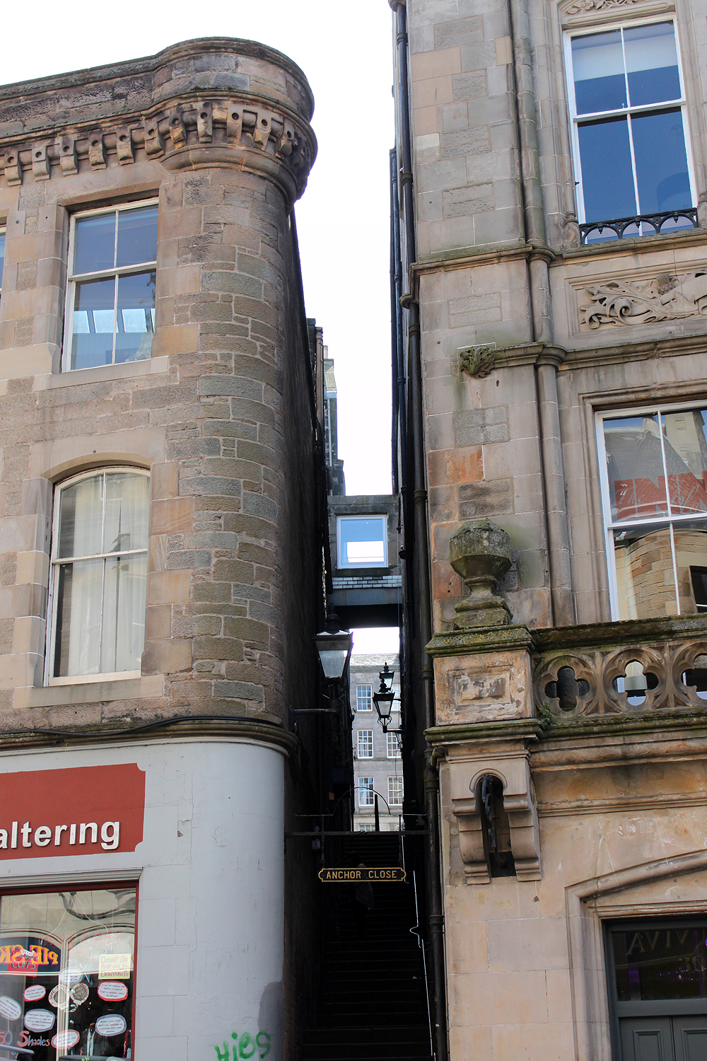 Waverleyn sillalla katseeni kiinnittyy välittömästi vasemmalla aukeavaan näkymään. Toinen toistaan upeammat, jyhkeät keskiaikaiset kivitalot lumoavat kauneudellaan. Onneksi olimme juuri siihen suuntaan menossa, sillä nuo kauniit vanhat rakennukset kutsuivat puoleensa tutustumaan niihin lähemmin.