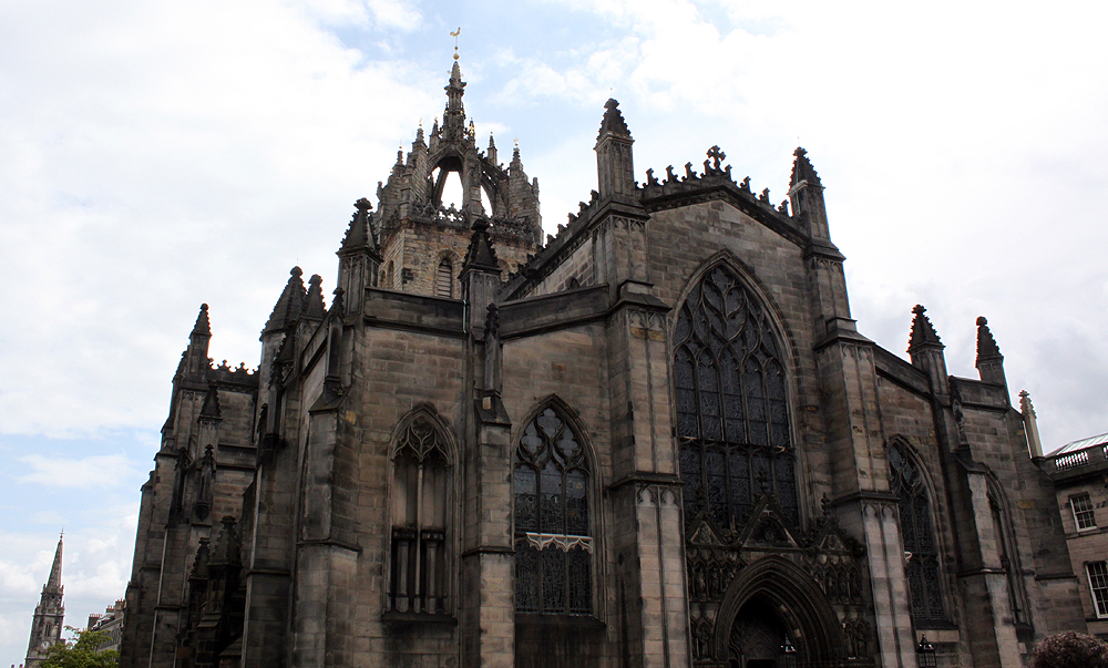 Ohitamme matkalla St Gilesin katetdraalin, jonka historia ulottuu lähes 900 vuoden päähän. Tällä kertaa emme vieraile kirkossa, vaan jatkamme matkaa kohti Edinburghin linnaa.