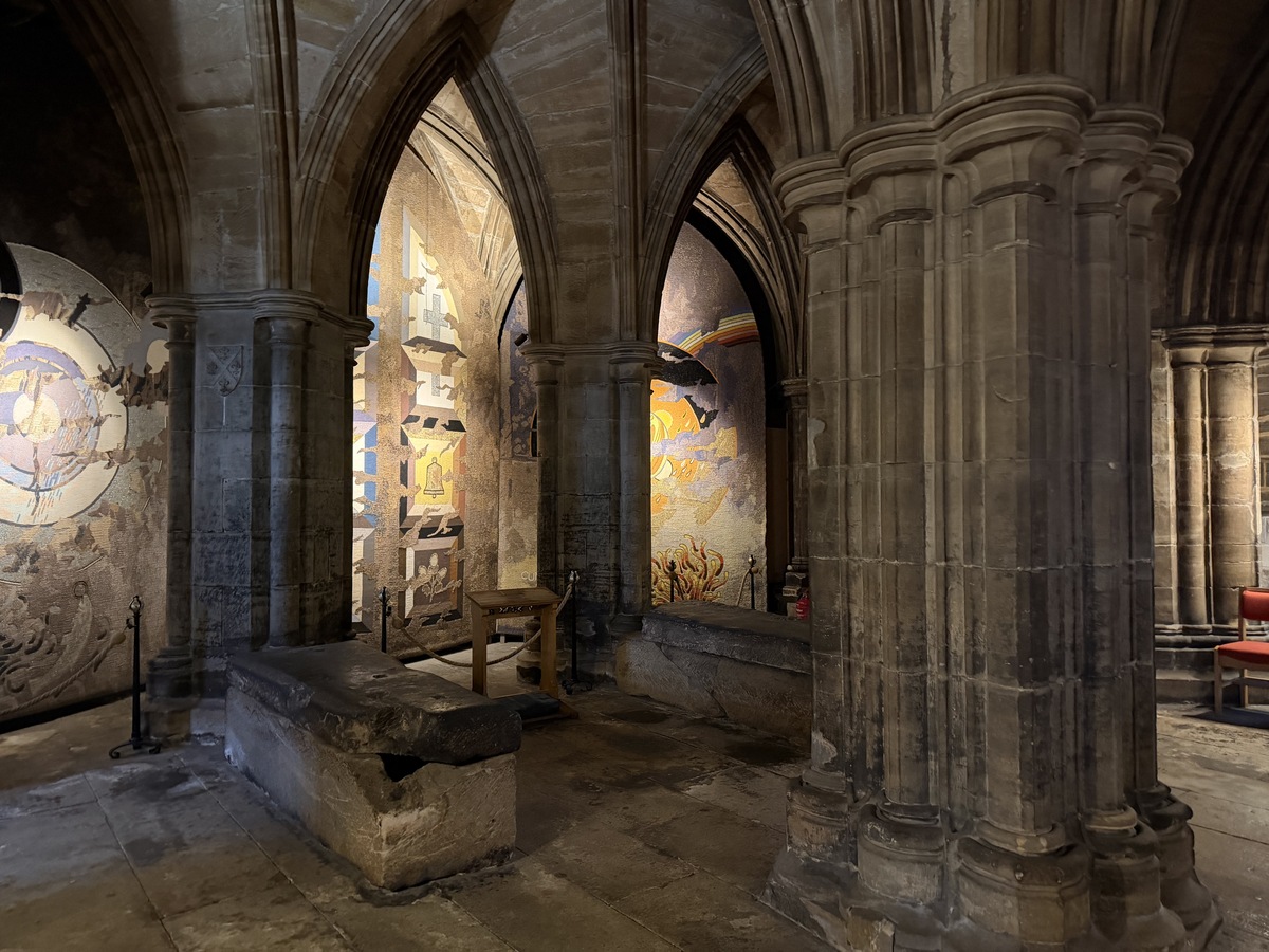 Katedraalin alakerran tunnelmallisessa kryptassa on kuvattu Outlander-sarjan sairaalakohtauksia, joiden tapahtumapaikka on sarjassa Ranska.