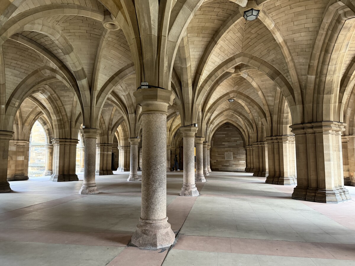 University of Glasgow on perustettu vuonna 1451 ja se on yksi vanhimmista englanninkielisistä yliopistoista maailmassa. Yliopiston alueelle on vapaa pääsy ja sieltä löytyykin sarjasta tuttu sisäpiha holvikaaripylväikköineen.