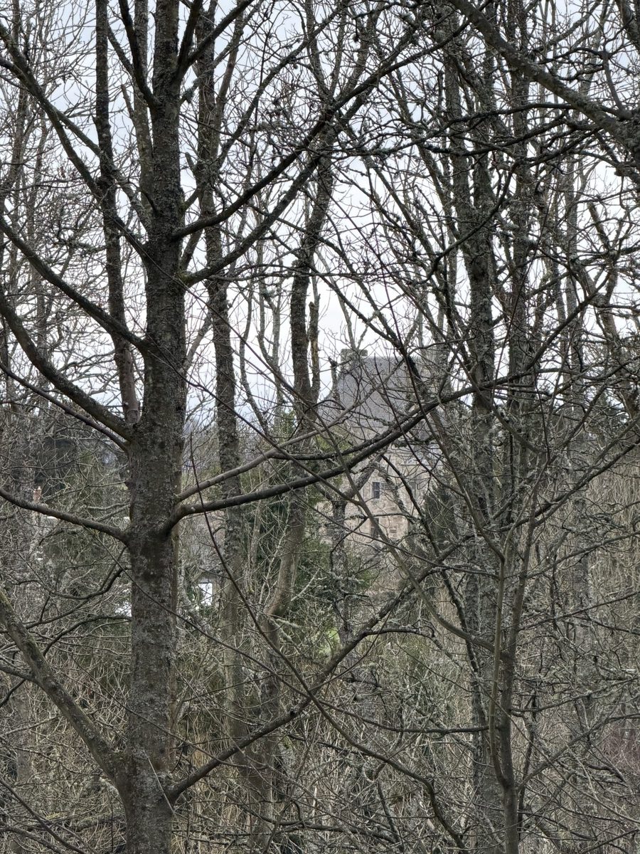 Jamien perheen kotilinna Lallybroch näkyy sarjassa niin 1700-luvun kuin 1900-luvun kohtauksissa ja kartan mukaan se olisi ollut helposti vierailtavissa. Paikalla oli kuitenkin jykevät muoviaidat ja linna oli remontissa, joten näimme siitä vain vilauksen puiden lomasta.