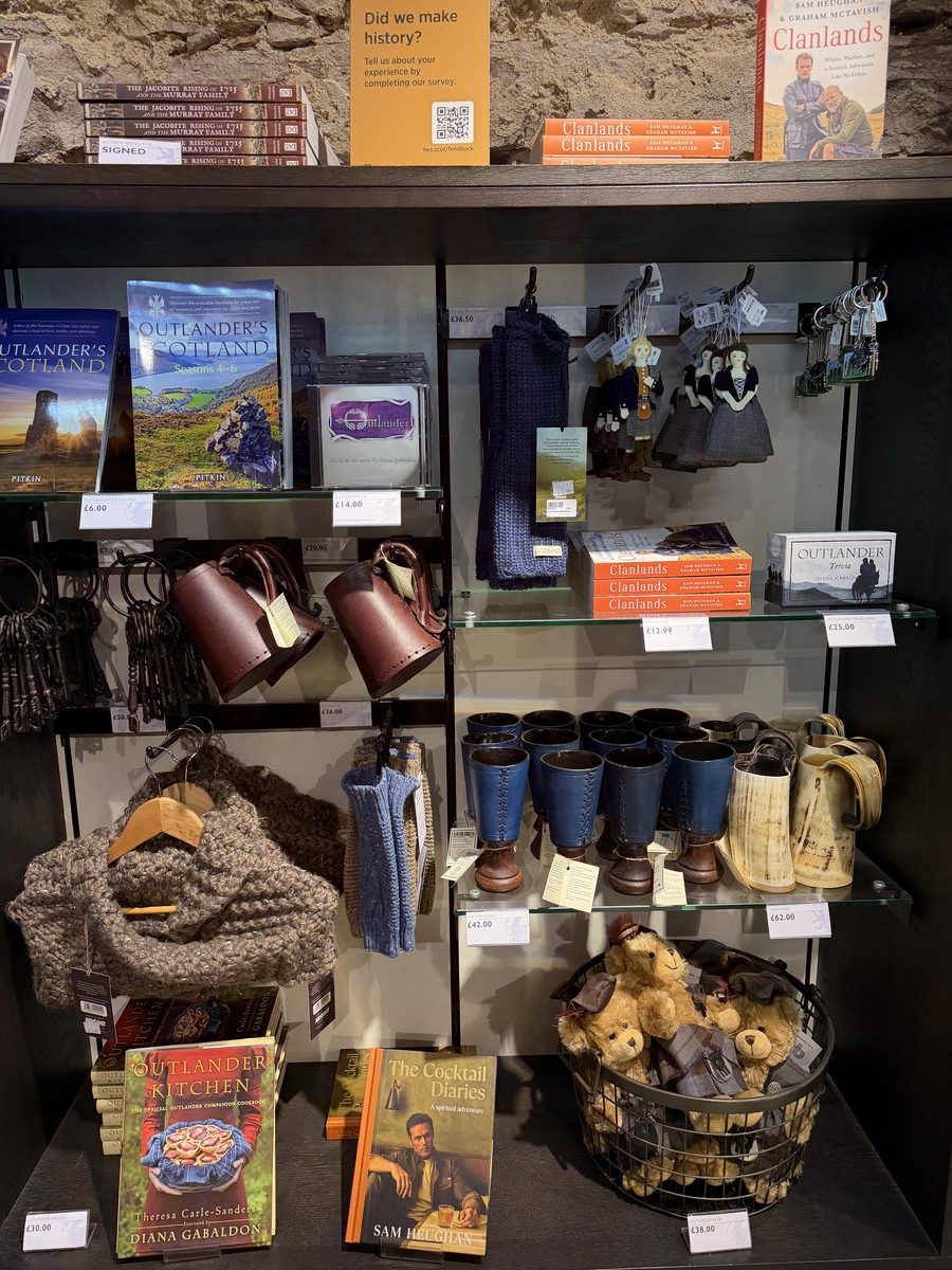 Linnan matkamuistomyymälä esittelee Outlanderin lisäksi myös muita siellä kuvattuja elokuvia ja sarjoja kuten Braveheart ja Game of Thrones.
