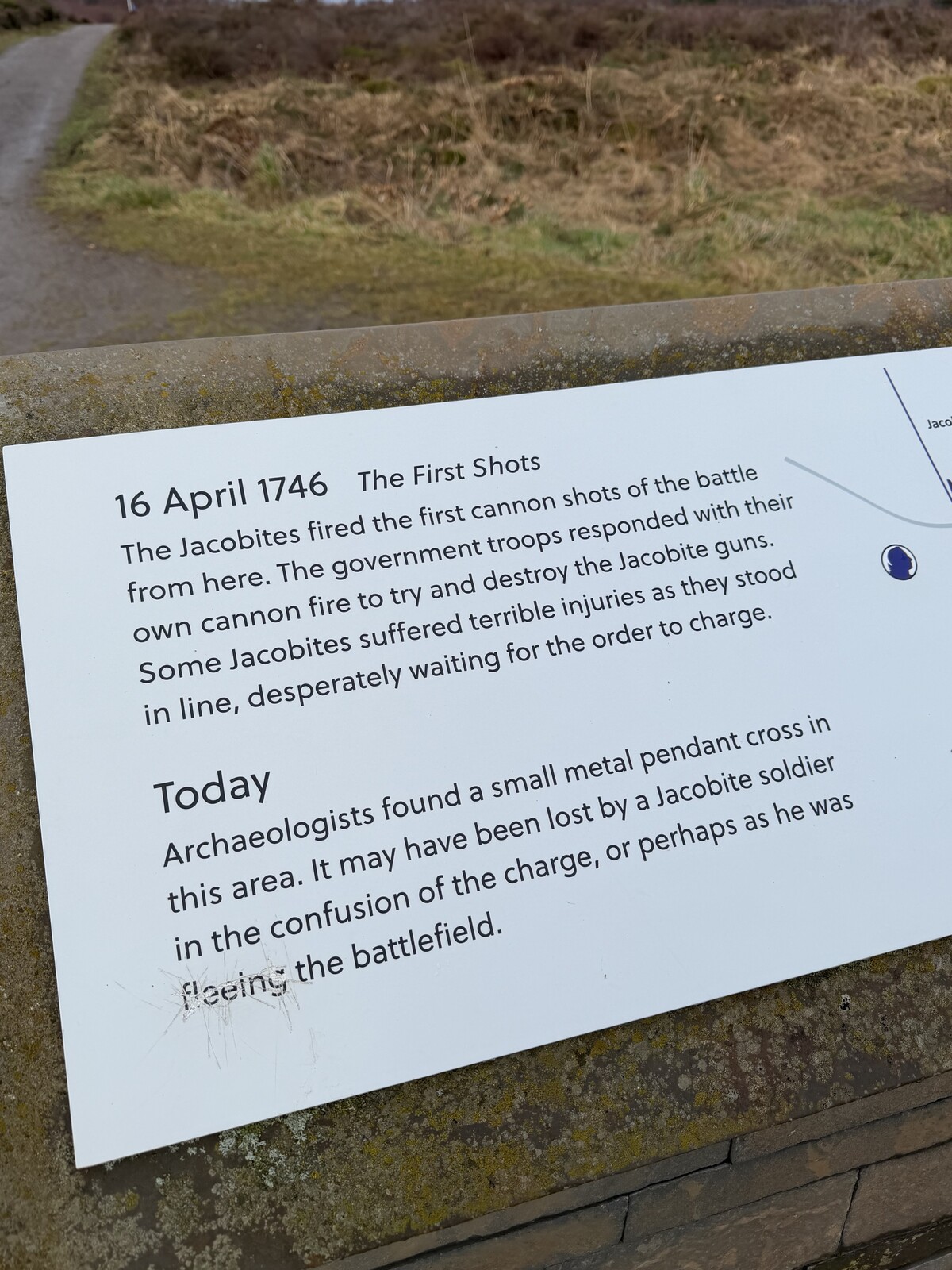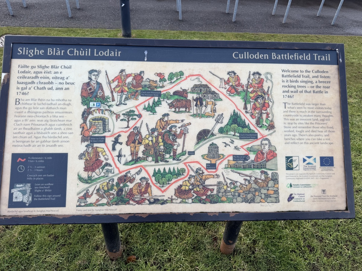 Outlander-sarjaa seuranneet löytävät täältä tutun Culloden-monumentin, joka on taistelussa menehtyneiden muistomerkki, sekä Fraser-hautakiven. Kentälle on havainnollistettu lipuin taistelulinjat, missä jakobiitit ja brittiläiset ottivat yhteen tuhoisin seurauksin.