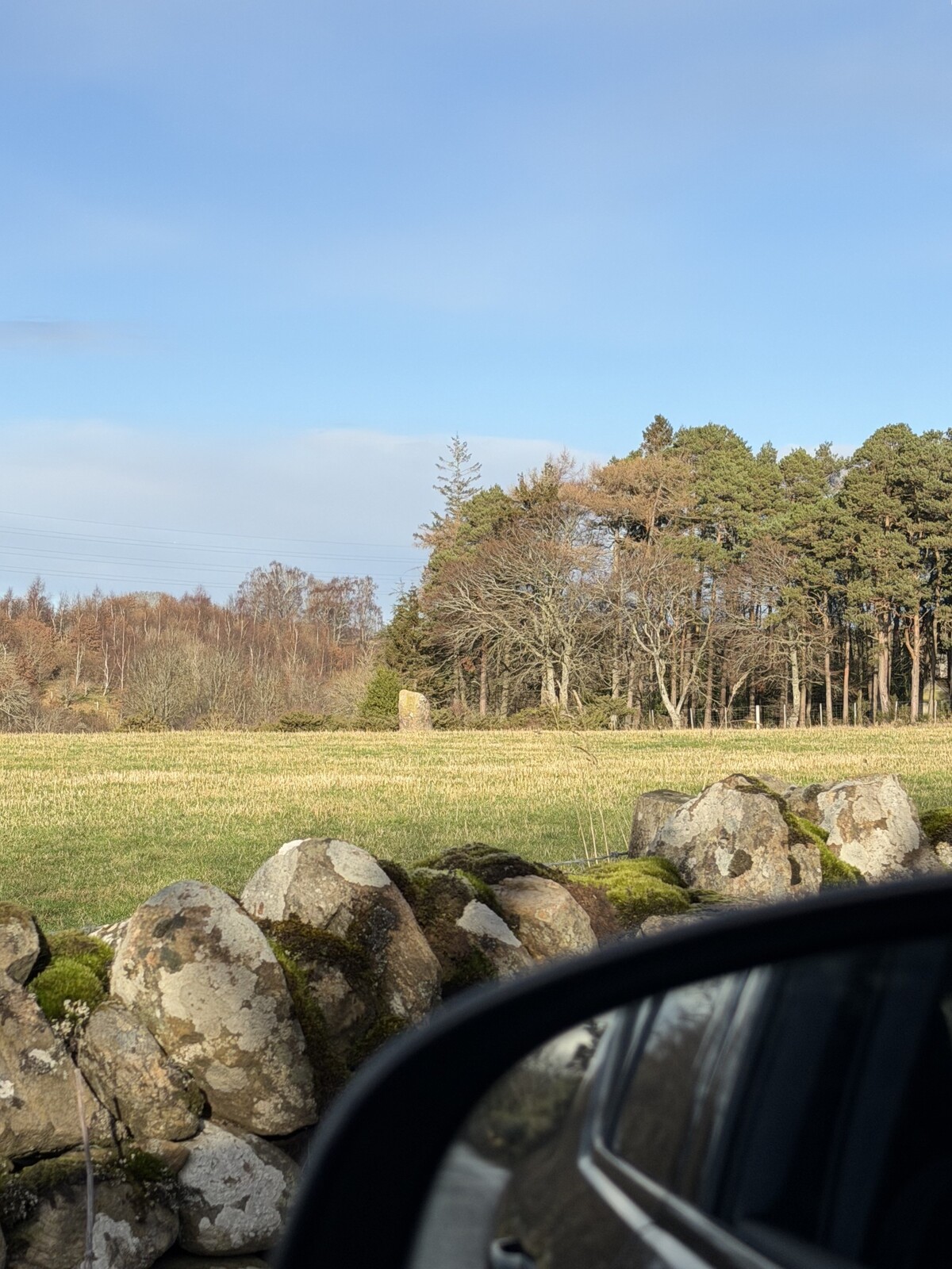 Vinkki: Viereiseltä pellolta löytyy vielä yksi erillinen kivi, josta saa helposti kuvan myös tien varrelta. Näet täältä myös vilauksen Culloden Viaductista, joka on Skotlannin toiseksi pisin muurattu maasilta. Hieno nähtävyys, mutta ei liity sarjaan muutoin.