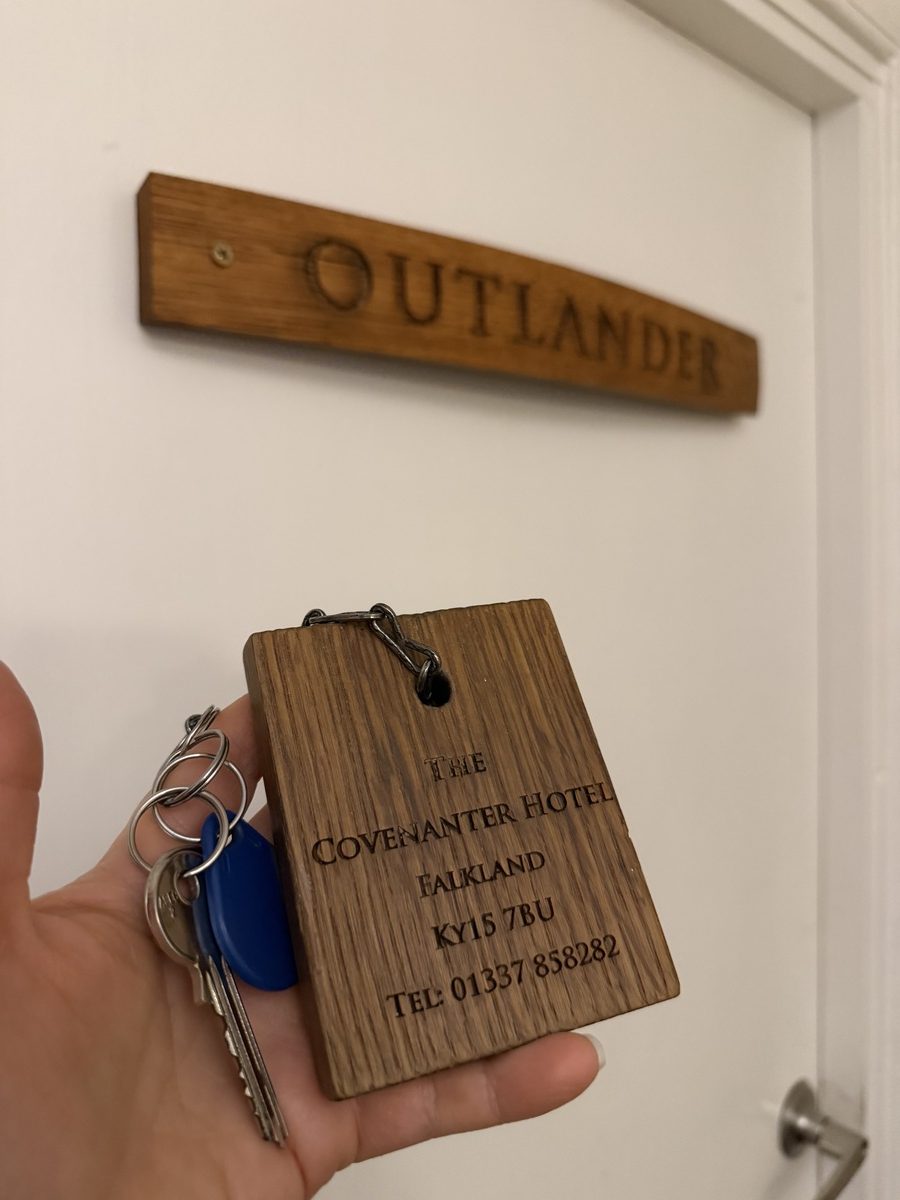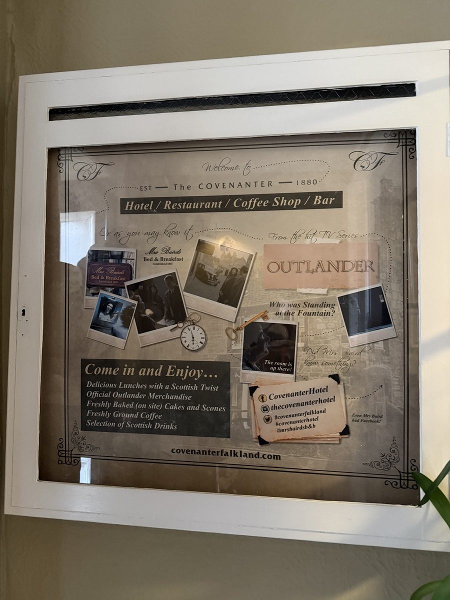 Me varasimme edellisenä päivänä huoneen The Covenanter -nimisestä hotellista ja ymmärsimme oikeastaan vasta paikan päällä, että miten iso juttu Outlander on tälle kylälle.