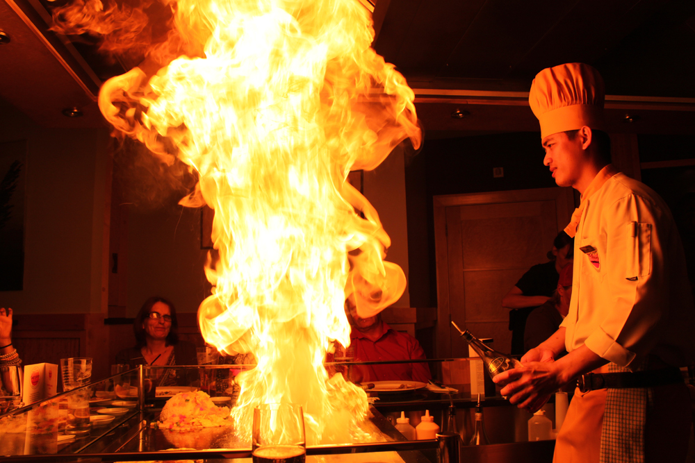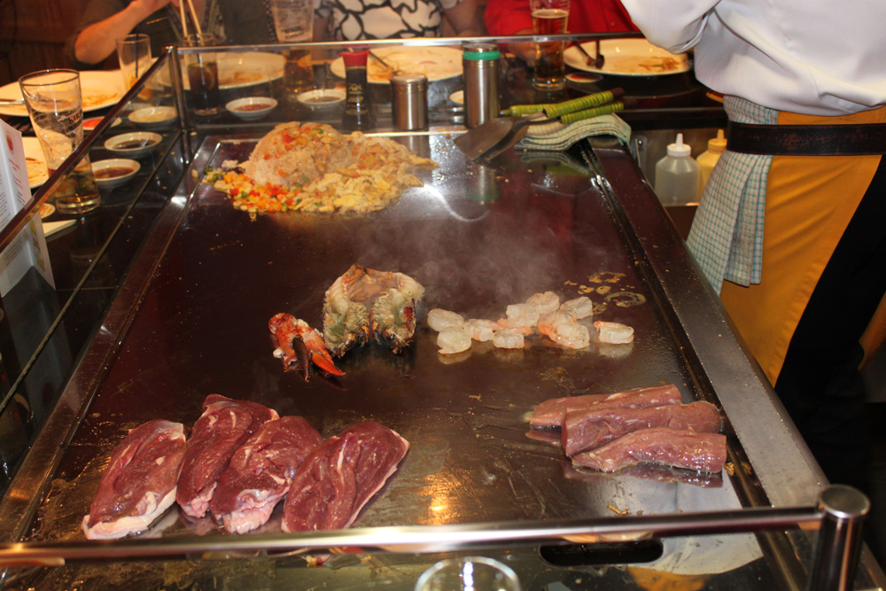 Yksi hauskimmista ja ikimuistoisimmista illallisista on varmasti nautittu tässä ravintolassa. Idea on siis se, että istumme pöydän ympärille ja saamme ihastella lähietäisyydeltä, kun erittäin taitava kokki valmistaa meille Teppanayaki-ruokia. Kokit, jotka ovat erittäin lahjakkaita, esittelevät taitojaan näyttävästi ja loihtivat herkullisia ruokia korkealaatuisista raaka-aineista. Kokit valitsevat yleensä pöydästä jonkun, jolle hassuttelevat muita enemmän ja jostain kumman syystä Ilkalle lankesi tämä rooli. Kokki jakoikin valmistamansa ruuan niin, että muut saivat ruhtinaallisen määrän lisukkeita ja Ilkan lautaselle ilmestyi vain yksi pieni pala perunaa. Tämä ravintola käy todella vatsan päälle, niin nauramisen kuin hyvien ruokienkin suhteen.
