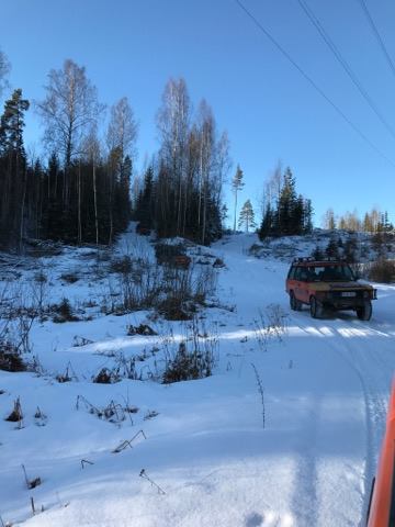 Aluksi harjoittelimme maatilan pihalla, jonka jälkeen siirryimme maastoon. Meidän autossa oli kaksi henkilöä, joten saimme kollegani kanssa molemmat hyvin ajoaikaa. Yhteensä meidän seurueessa oli kuusi autoa, joista ensimmäistä ajoi ohjaaja antaen jatkuvasti ohjeita radiopuhelimella. Lisäksi mukana oli mönkijällä toinen ohjaaja, joka varmisteli, että pääsimme etenemään turvallisesti.