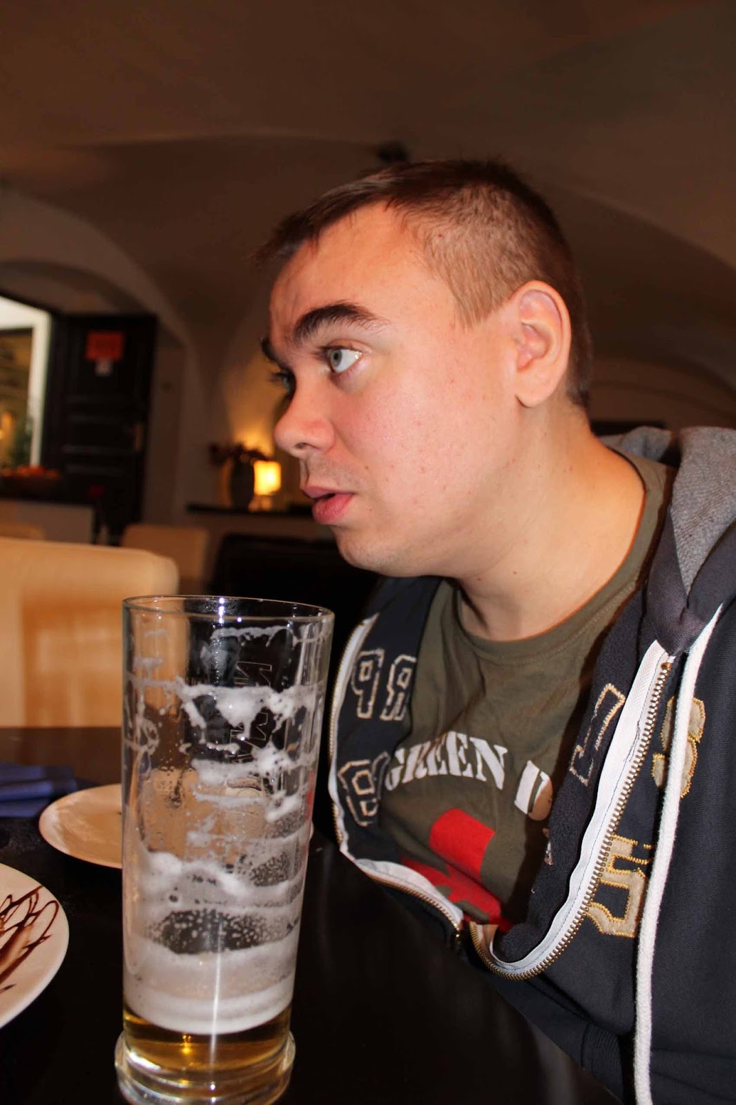 Jos liikkuu ilman tiettyä päämäärää, suosittelen menemään rohkeasti neuvoa antavalle heti esimmäiseen, ja vaihtamaan sitten ahkerasti paikkaa. Prahassa ei pääse jano yllättämään. Staropramenista prahalaiset eivät tykkää, koska se on prahalainen panimo ja irvileuat väittävät, että se tehdään saastaisesta Vltavan vedestä. Ei se nyt niin kummallista ole, jos nyt ei kovin erityistäkään.