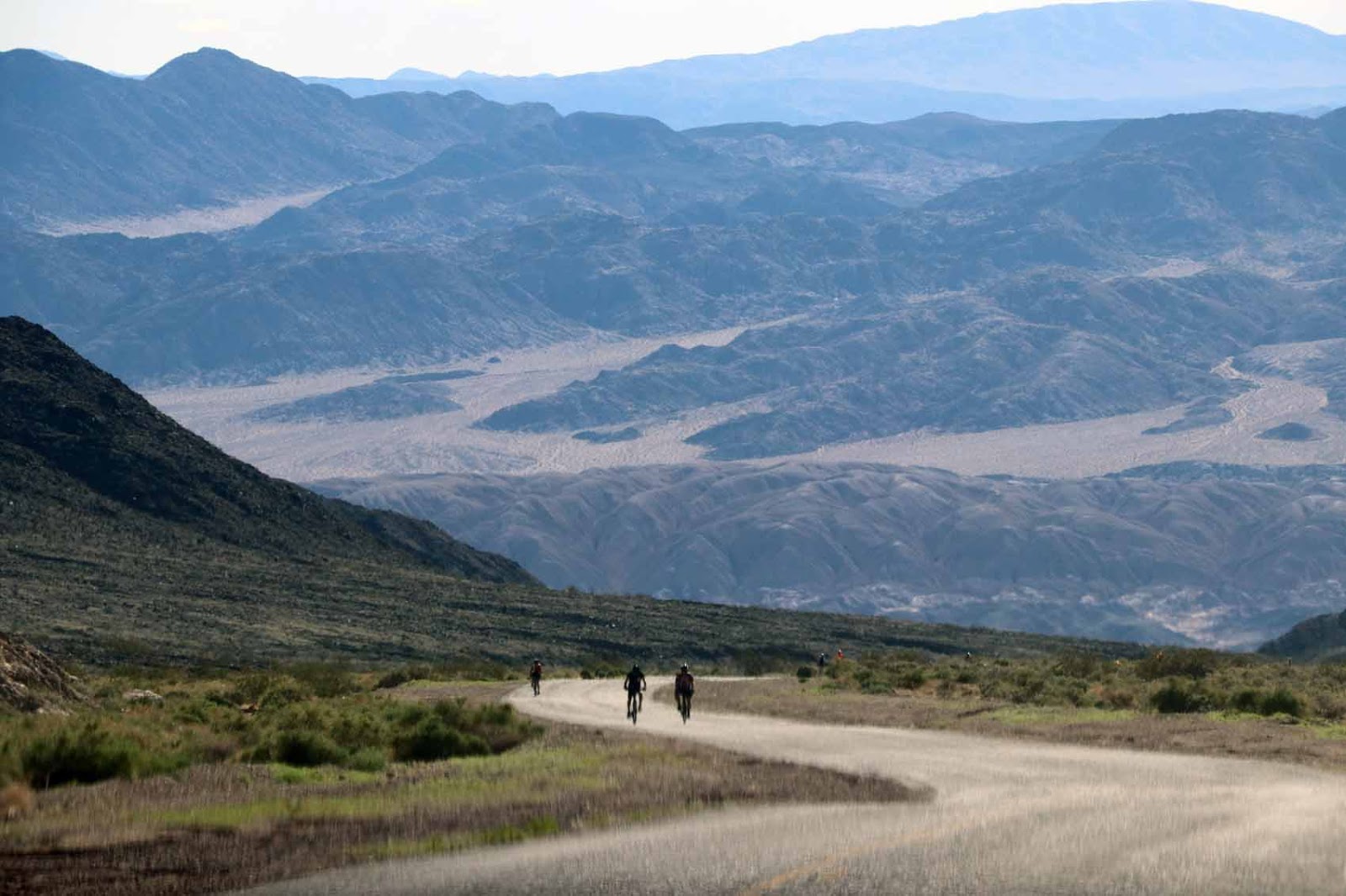 Death Valley’ta halkoo tie numero 178 ja sitä voi ajaa kumpaan suuntaan tahansa. Me valitsimme myötäpäivän, koska se tuntui hyvältä vaihtoehdolta. Maisema oli kuin jostain lännen elokuvasta: aavikkopensaita, kivikkoja, mäkiä ja ympärillä vuoristoa. Kun liikennemerkissä lukee “Next services 57 miles”, se todellakin tarkoittaa sitä. Pimeällä et saa tästä paikasta mitään irti, paitsi jos haet extreme-seikkailua. Alueella ei ole palveluita, katuvaloista puhumattakaan. Meitä vastaan ajeli jonkun verran pyöräilijöitä ja heidän huoltojoukkoina toimineita pakettiautoja.