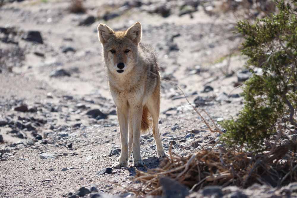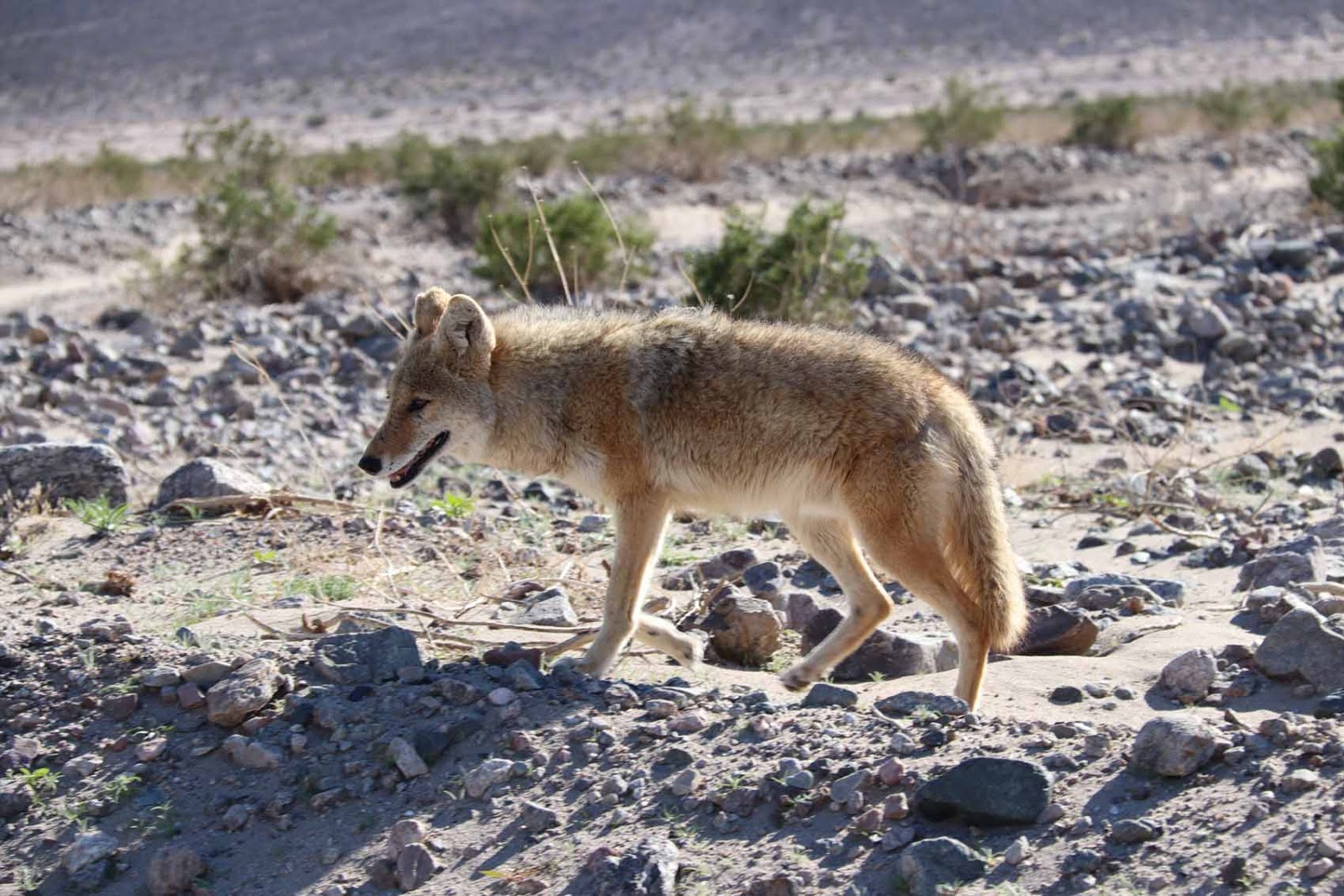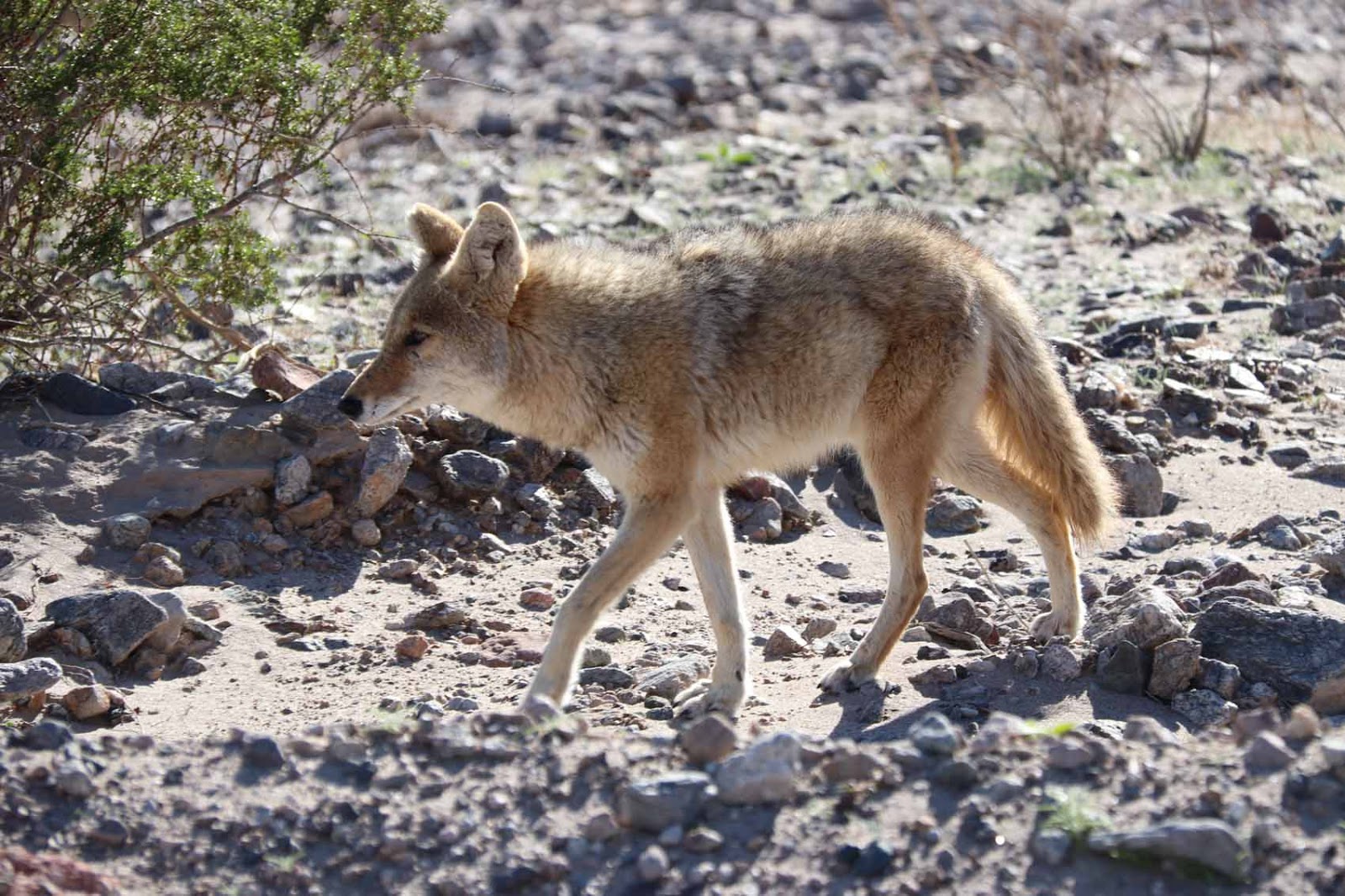 Yksi reissumme mukavimmista kohtaamisista tapahtui juuri tällä reitillä. Onneksi ajelimme kohtalaisen hiljaa, sillä autome edestä kipitti ihan oikea kojootti! Auto seis ja kamerat esiin! Meidän onneksemme kojootti ei ollut kovin arka, vaan se itseasiassa palasi katsomaan meitä tien reunustalle varmaankin ruuan toivossa. Poseeraus edestä ja sivusta, en olisi voinut parempaa kojoottimallia toivoa! Lyhyen kuvaussession jälkeen kojootti katosi aavikolle ja me jatkoimme matkaa.