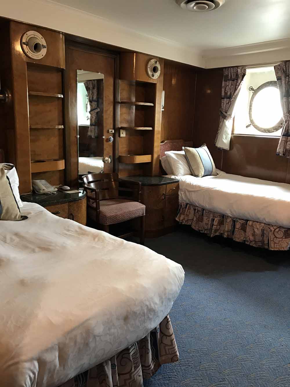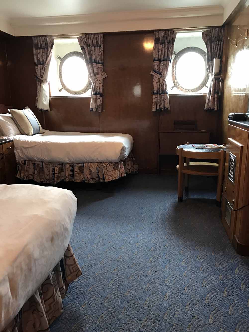 Jäätävästä väsymyksestä huolimatta laiva teki meihin heti vaikutuksen! Upeat pitkät käytävät, kirjavat kokolattiamatot ja seinien puuverhoilut loivat kodikkaan, mutta samalla arvokkaan tunnelman laivaan. Pakolliset turvallisuuteen liittyvät tekijät, valaisimet ja kaiteet täydensivät sisustusta huomaamattomasti, alkuperäistä ilmettä kunnioittaen.